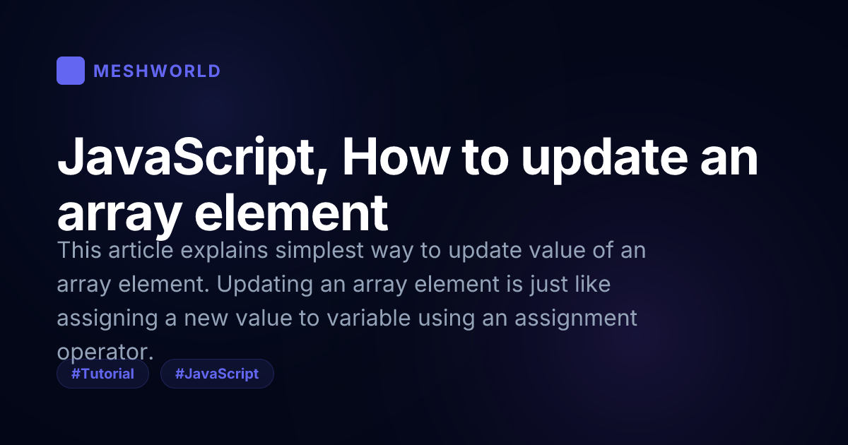 In JavaScript, developers need that they need to update the value of an array element. It is just as easy as assigning a new value to a variable using an assignment operator. So in this article, we will see it