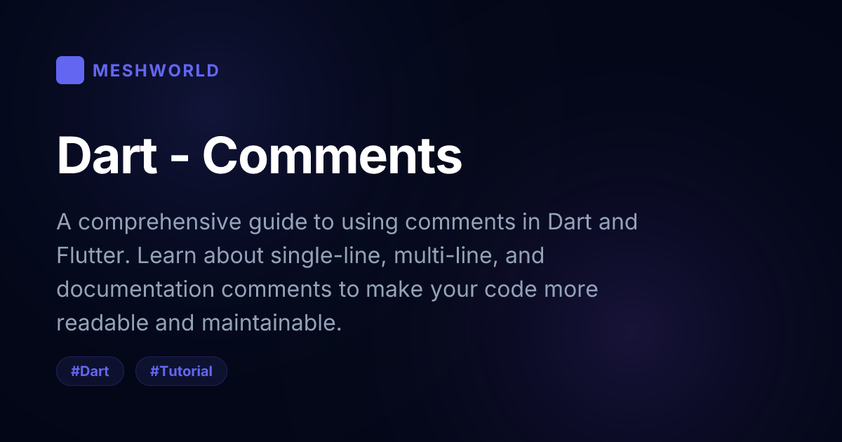 A comprehensive guide to using comments in Dart and Flutter. Learn about single-line, multi-line, and documentation comments to make your code more readable and maintainable.