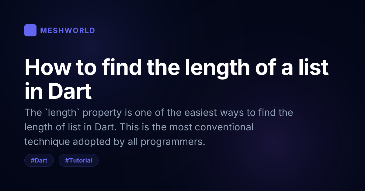 The `length` property is one of the easiest ways to find the length of list in Dart. This is the most conventional technique adopted by all programmers.