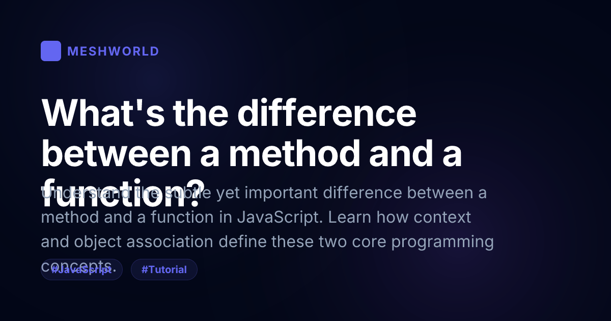 Understand the subtle yet important difference between a method and a function in JavaScript. Learn how context and object association define these two core programming concepts.